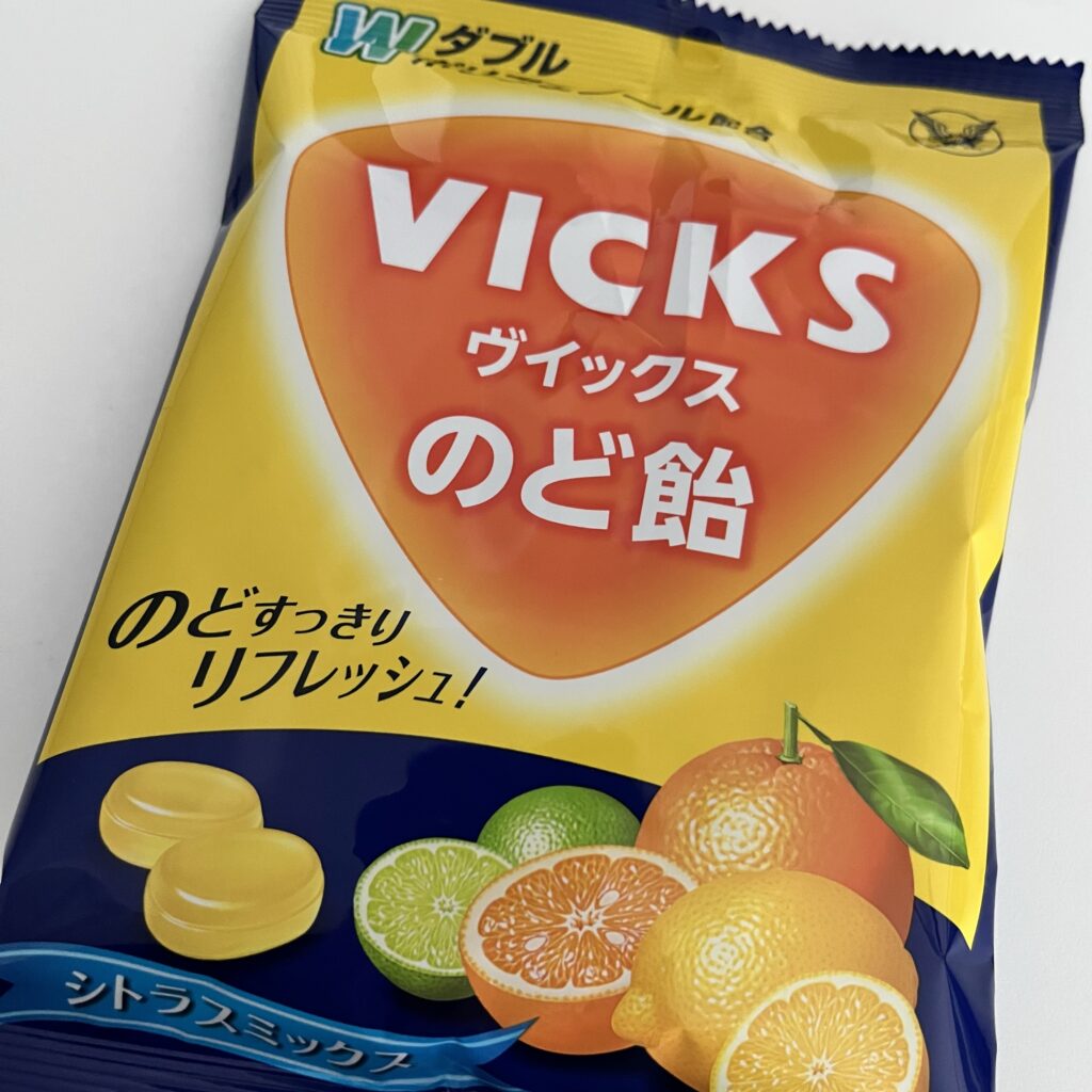 これはのど飴。殺菌作用のある、箱に入っているタイプのものもあります。