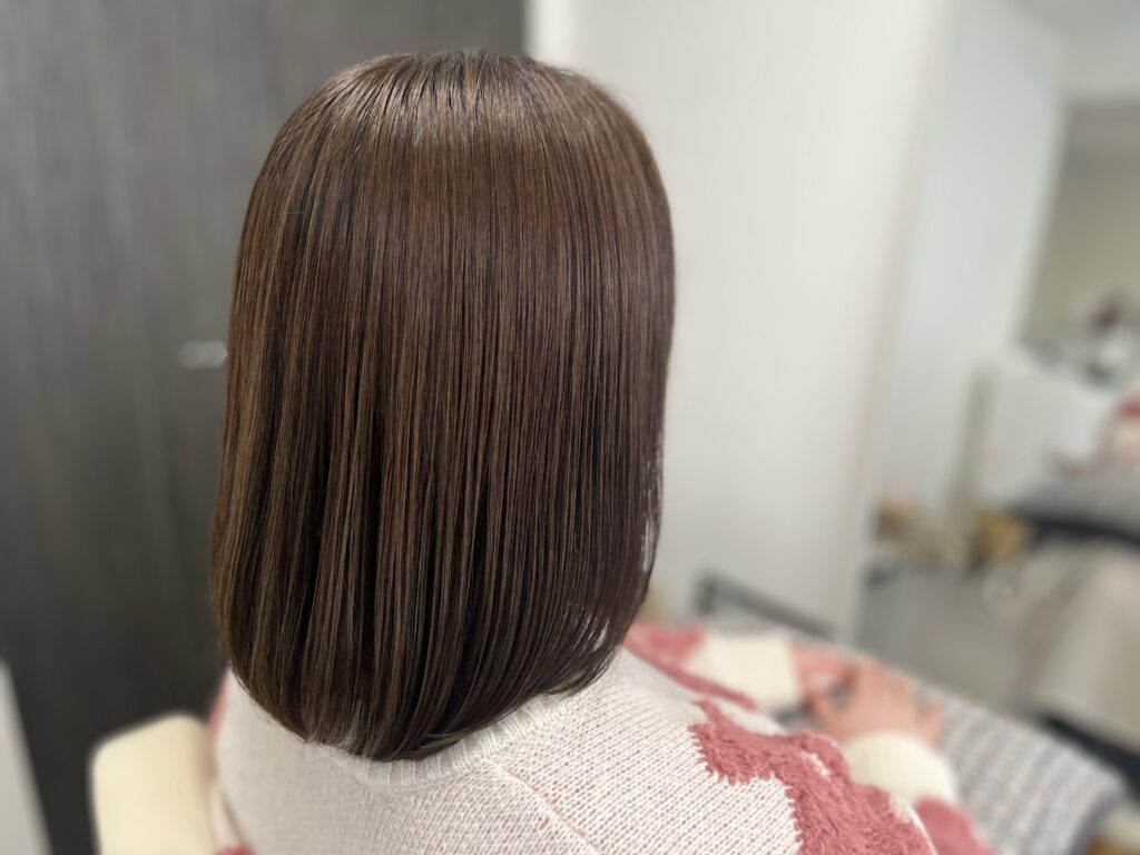 ストレートアイロンで毛先ワンカールで内巻き仕上げ。